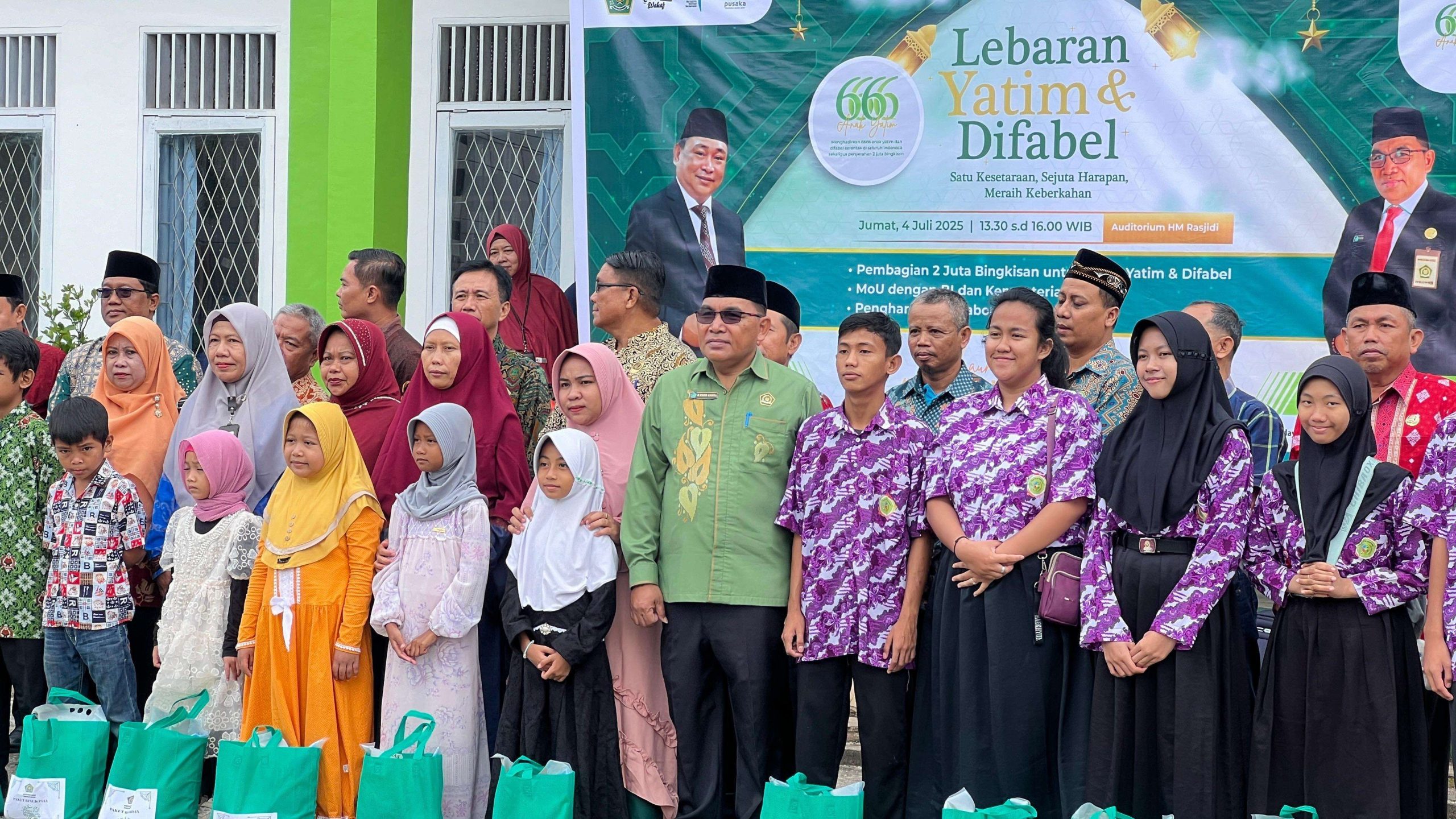 “Kami membagikan 1.000 paket kepada yatim piatu dan disabilitas sebagai bentuk kepedulian ASN Kemenag. Kementerian Agama harus menjadi garda terdepan dalam melindungi kaum dhuafa, terutama mereka yang sering terpinggirkan dalam pembangunan. Mereka memiliki hak yang sama—hak atas pendidikan, pekerjaan, dan perlindungan,” tegas Hasib.